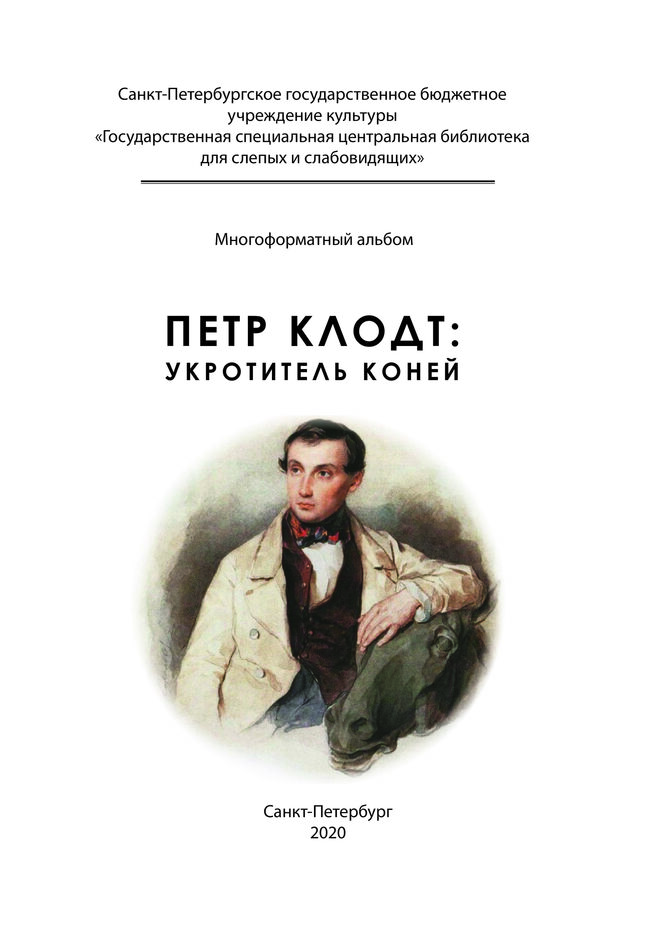 шрифтом, прилагаются 5 рельефно-графических и 3 прототипированные иллюстрации, содержащие изображения скульптур Петра Клодта и сопровождаемые листами с тифлоописаниями.